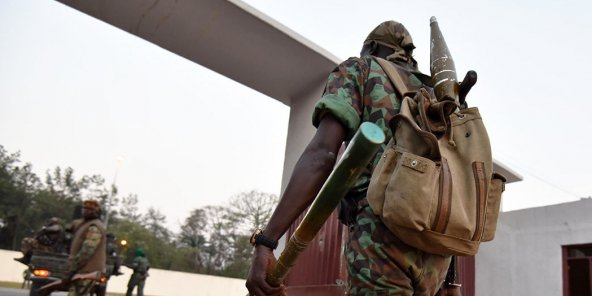 C’est un préfabriqué vert pastel au milieu d’un terrain vague, comme abandonné à la va-vite. Le bâtiment est criblé de balles, ses portes ont été arrachées. À l’intérieur, plusieurs dizaines de lits de camp ont été laissés là. Une sandale, une paire de lunettes de soleil cassée, des boîtes de conserve, des canettes de Cody’s et quelques casseroles jonchent le sol… Il y a quelques mois encore, ce camp assez sommaire, situé à l’entrée sud de Kafolo, dans le nord-est de la Côte d’Ivoire, accueillait un détachement de l’armée. Dans la nuit du 10 au 11 juin, il a été la cible d’une violente attaque jihadiste, au cours de laquelle quatorze militaires ont péri. La deuxième en territoire ivoirien, après celle de Grand-Bassam en mars 2016, mais la première du genre dans cette région frontalière avec le Burkina Faso.