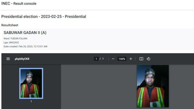 Il y a également eu des cas où, au lieu de télécharger une photo d’un résultat d’élection présidentielle sur le site Web de l’Inec, des photos de personnes semblent avoir été publiées.